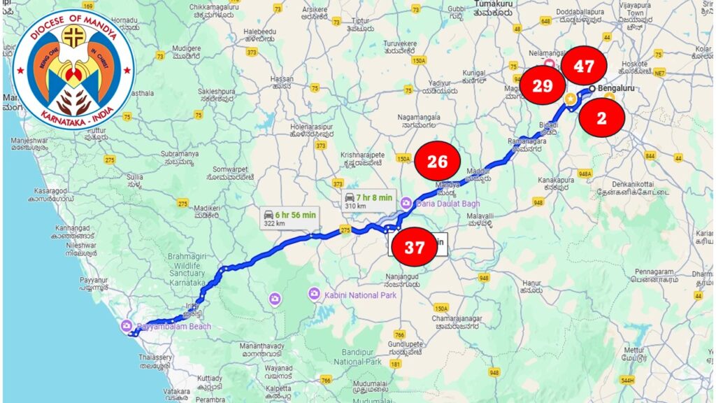 2) Parishes along Bangalore – Mysore – Hunsur – Kannur Route
