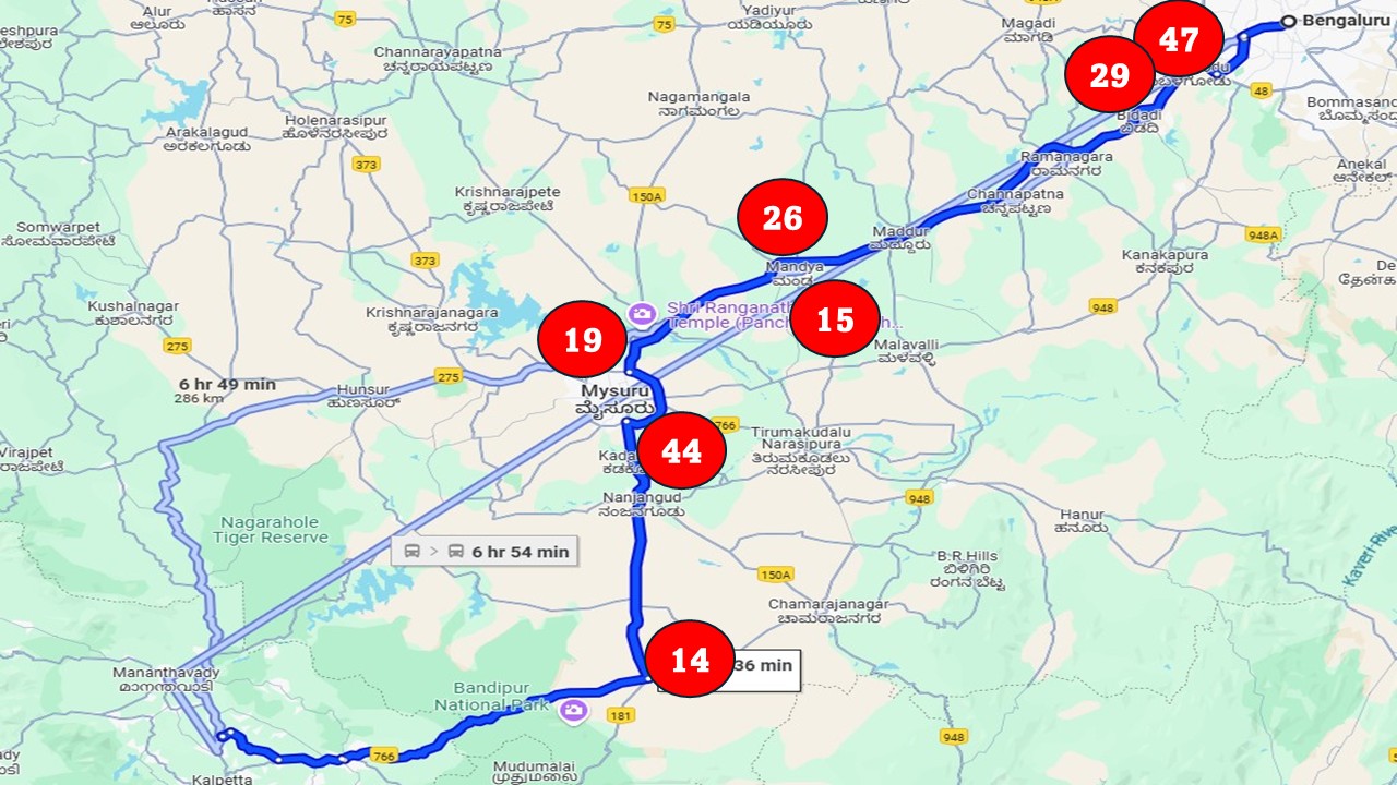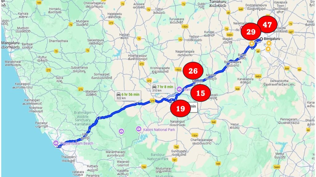 1) Parishes along Bangalore – Mysore – Gundelpet – Waynad – Kozhikode Route